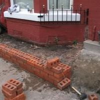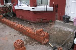 Once we had removed all the old brick and flag paving, we then built a new wall using moden brick and pillar caps.