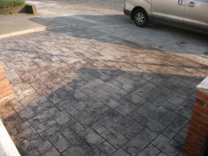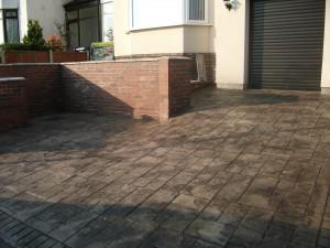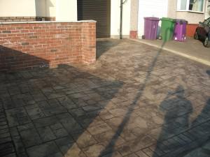 Here we excavated the driveway which was on a slope we laid 4 inches of hardcore and 4 inches of concrete.We used a sandstone colour with a dark brown release to give this driveway a two tone colour.And the design we used was ashlar slate this job was done in childwall Liverpool by J&l landscapers Liverpool. As you can see the high quality finish.