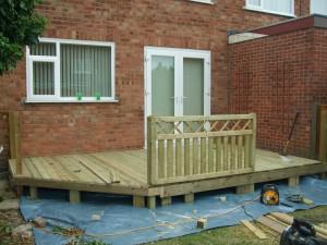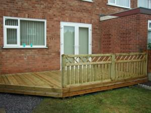 This Liverpool decking project took place in the Knowsley area . We erected a decking with hand rails we used pressure treated decking boards with a treated solid frame