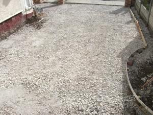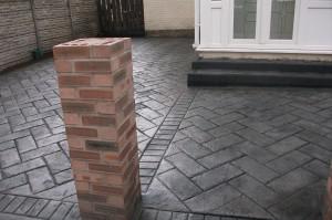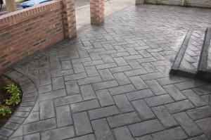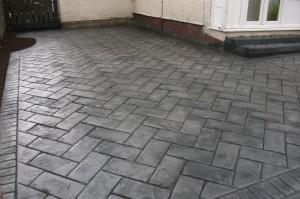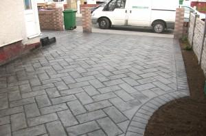 We here laid a concrete driveway using a herringbone slate design and a platinum and charcoal colour. We excavated 8 inches using 4 inches of hardcore and 4 inches of concrete.