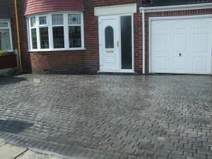 We have completed numerous Liverpool driveways but on this project we started by excavating the driveway then laying a suitable sub base to hold numerous cars. We then used a classic grey colour with a charcoal release agent to achieve this two tone cobble look out of imprinted concrete this job was completed in just 3 days by J&l landscapes