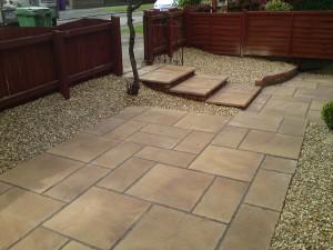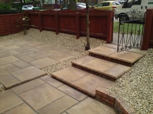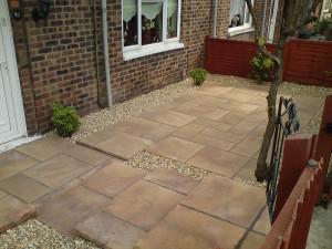 On this Liverpool landscaping job we had to landscape a front garden. We had to build steps as u can see in the pictures. Also pave the rest of the job leaving a border around the flags with golden gravel. This job took place in old swan and looked very nice with a good quality finish.