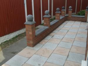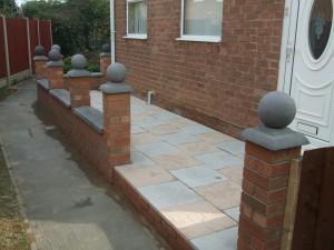 This paving project consisted of a garden wall with numerous pillars with nice pillar caps and copings for the top of the wall. we also paved the front with the customers choice of flags we managed to start and finish this job in just 4 days. We later returned to put up a fence in the rear garden this was in Halewood Liverpool.