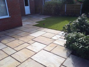 We then used a harvest colour natural sandstone paving. Below are some photos to see the great results there are pictures to show the paving wet and dry as each has its own unique look.