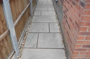 Once we had created the new design and installed hardcore to level it out, we then installed 130 meters of Natural Sandstone.