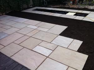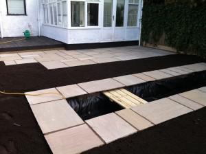 Once the pond feature was completed, we then installed Lakeland colour Natural Sandstone paving with Sandstone surround to give it an excellent finish.