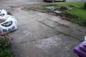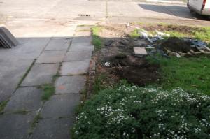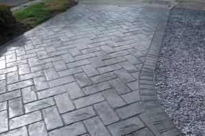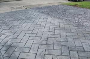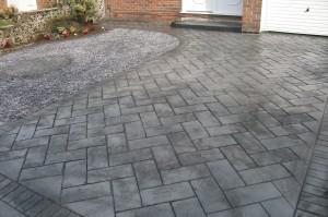 We excavated this front driveway and garden then we put in hardcore for a foundation.We also put in a step the design e used was herringbone slate in a platinum and charcoal colour.Also we put in a concrete circle with blue slate around it as you can see we tinted the step so the outer frame stands out. This was another quality printed concrete project finished by J&l landscapes.
